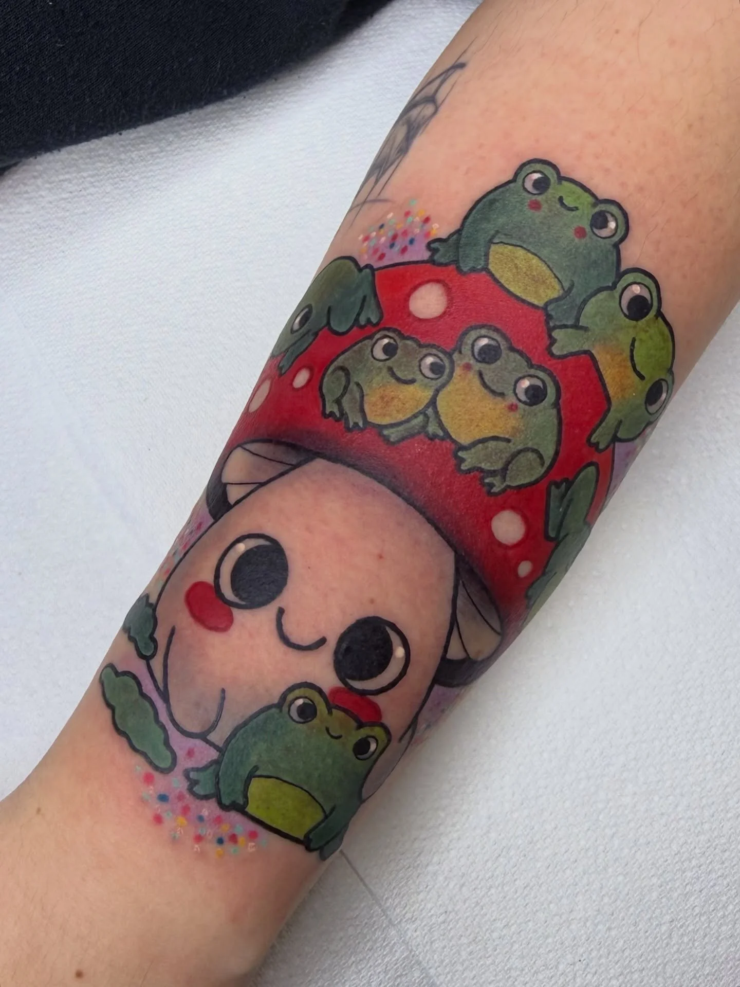 View fullsize All eyes are on you…. Some frogs and a mushy for lovely Rhea 🍄🐸